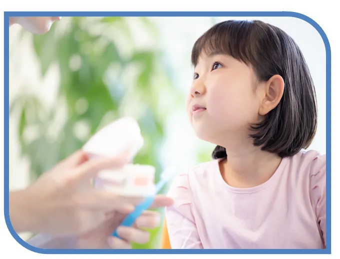 無理に治療を進めるのではなく、練習から始めて歯科医院に慣れてもらえるような対応を心がけています。子どものお口の健康を守るため、虫歯治療だけでなく顎の成長や歯並びまで含めた総合的な診療を行える環境を整えました。歯並びの乱れに繋がる口呼吸や舌の癖などを改善するMFT、口腔筋機能療法にも対応し、様々な角度から根本的な原因へのアプローチを目指します。