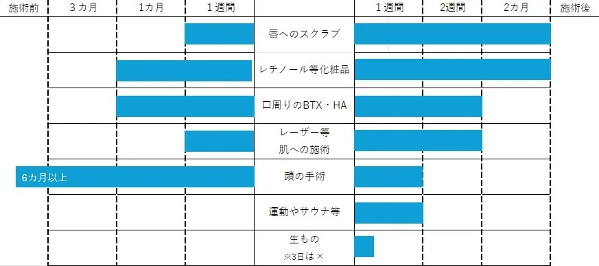 ・当日の激しい運動、サウナや長時間の入浴、施術部位のメイクは1週間お控えください。(プールや温泉の利用も控えてください。)