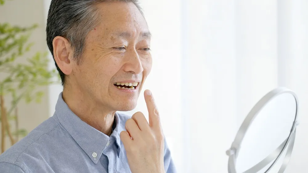 顎の骨は、天然歯やインプラントがないと吸収されて「抜けて」しまいます。顎の骨の吸収は、顎・顔のハリが失われるなど、顔貌への悪影響が懸念されます。
