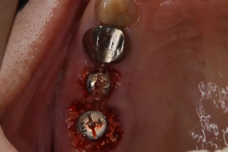 膿が出ている場合は、インプラントを再手術するのが一番近道ではありますが、難しい場合は洗浄して様子みることもあります。