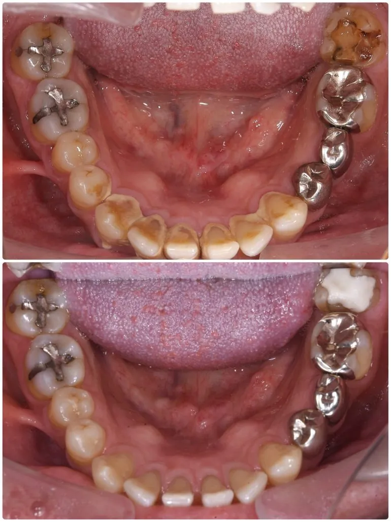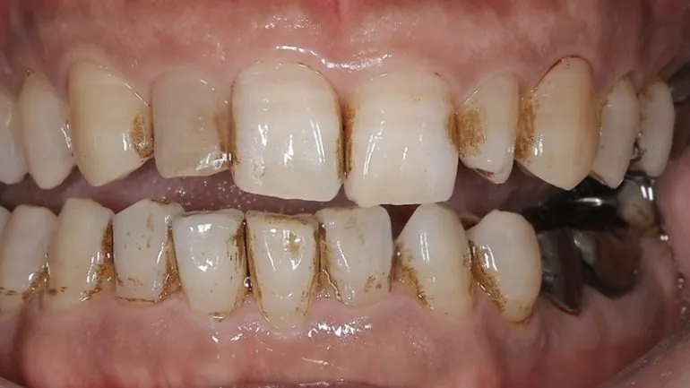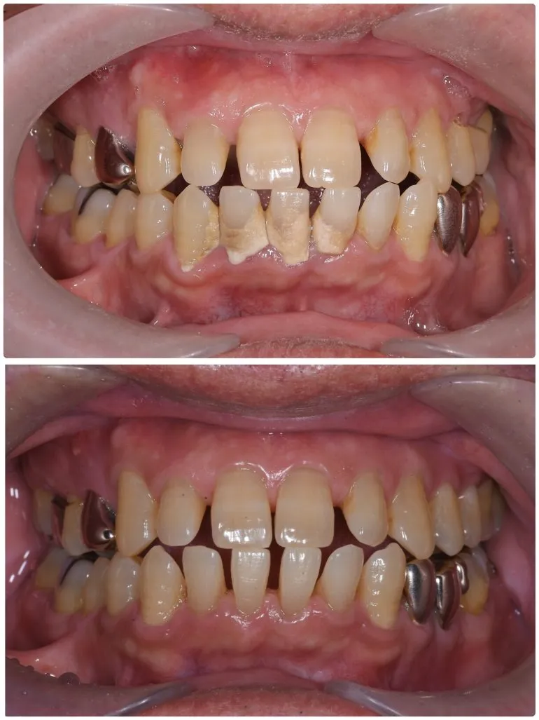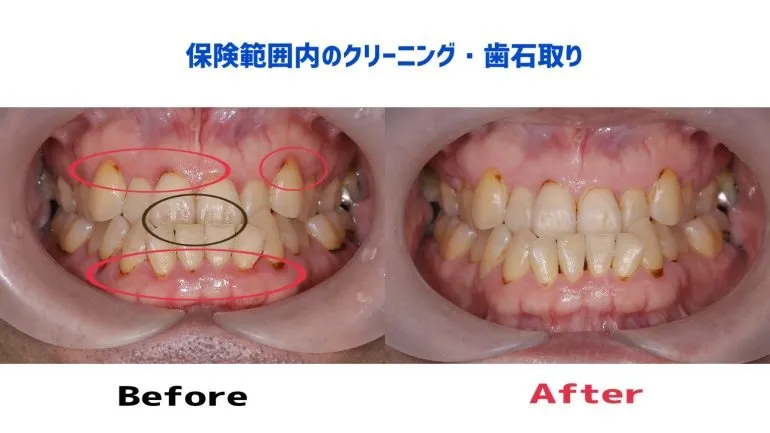 歯石がこびりついている場合も、保険適用でここまで綺麗になります。